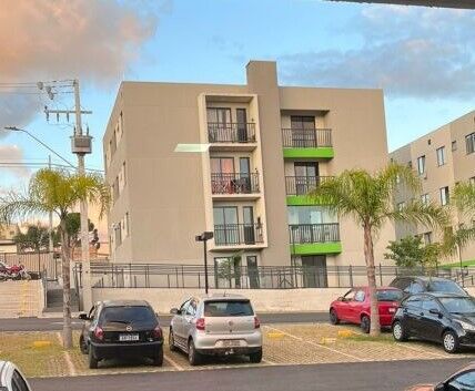 52m² - 2 quartos, sala, cozinha, banheiro, área de serviço e vaga para carro.