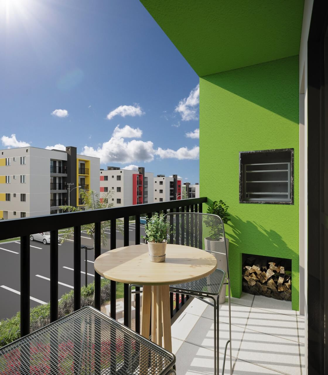 Apartamento contendo: 1 ou 2 quartos, sala, cozinha, banheiro, sacada com churrasqueira, vaga de garagem e área de serviço.
