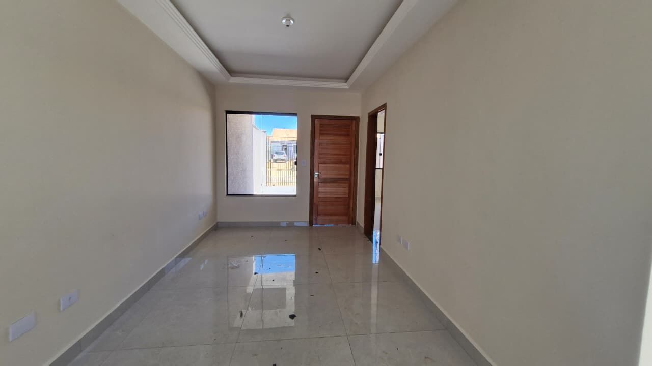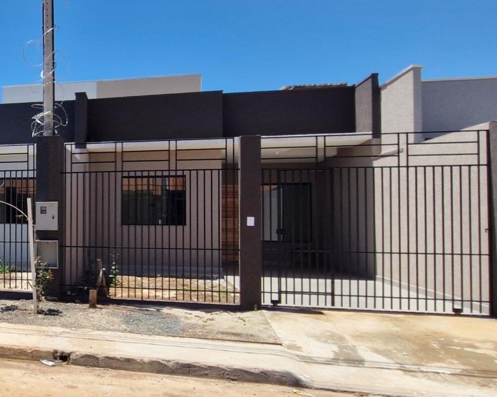 80m² - 3 quartos, sendo 1 suíte, sala de estar, cozinha, banheiro social, área de serviço e vaga para carros.