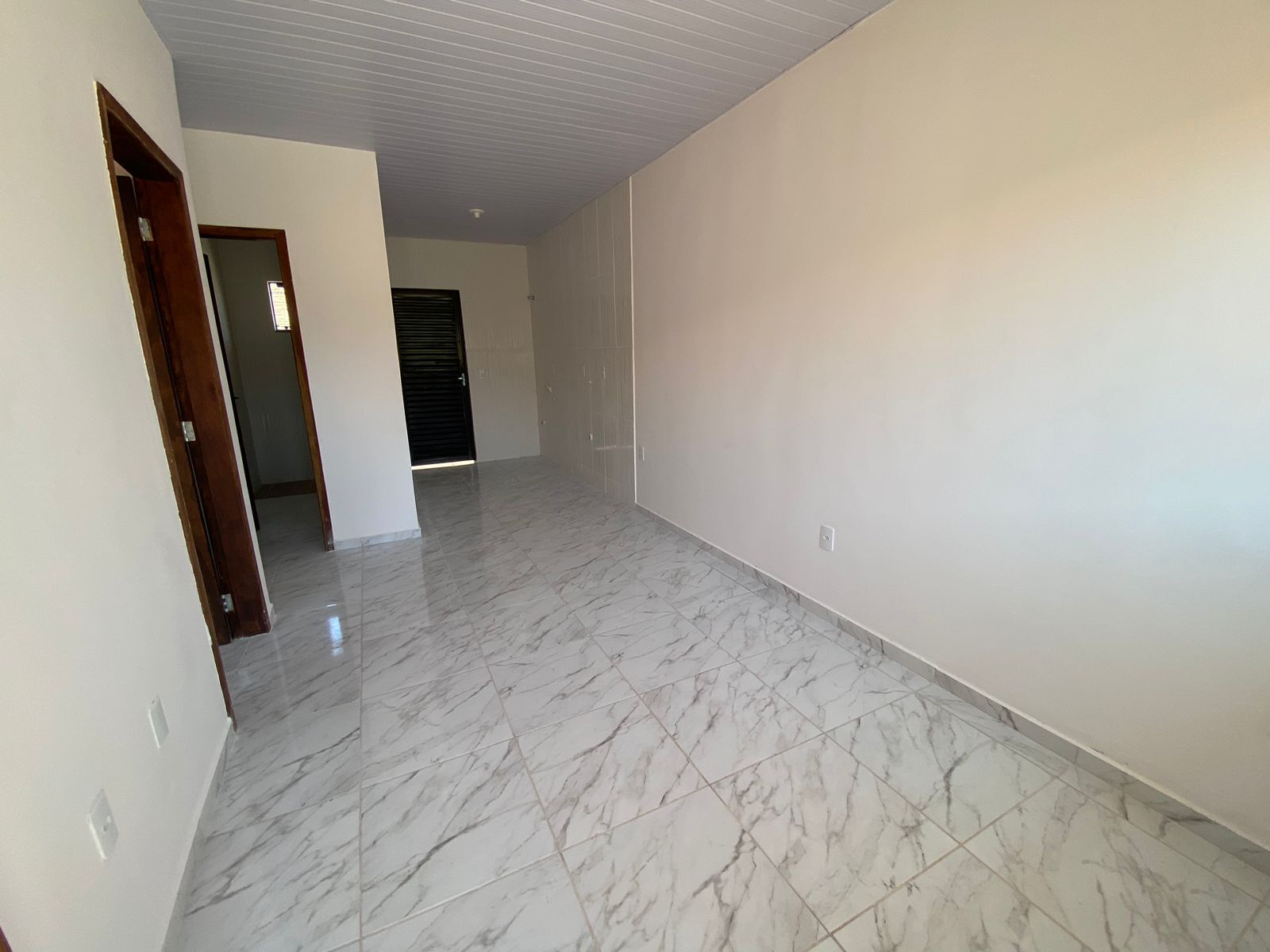 45m² - Sendo 2 quartos, sala de estar, cozinha, banheiro social, área de serviço e vaga para carros.