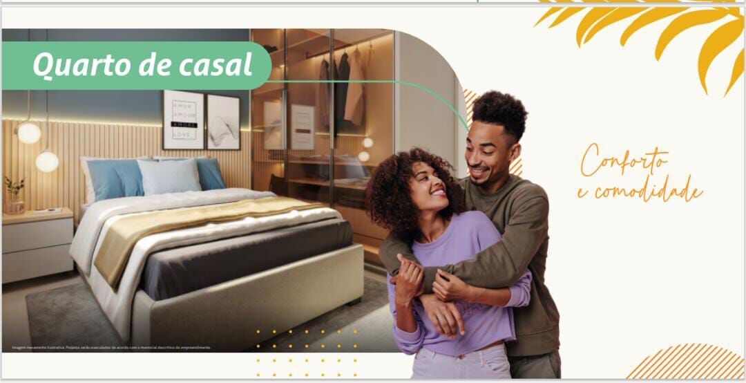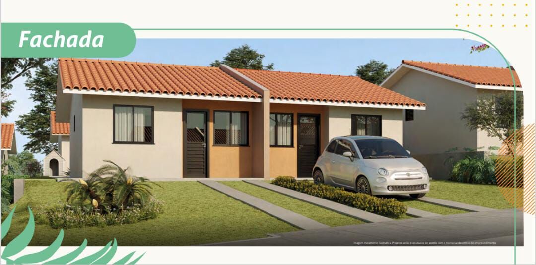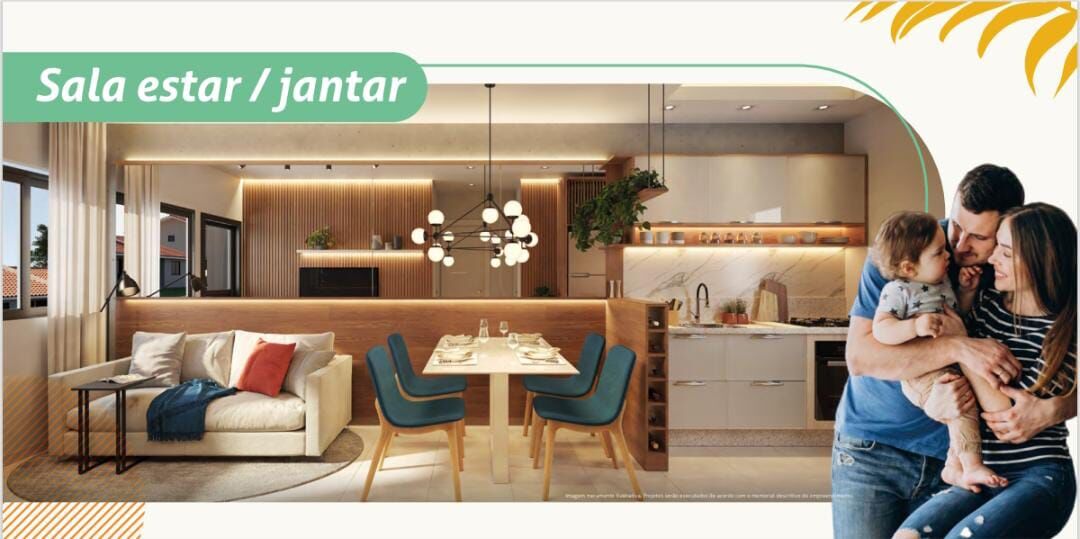 46,67m² - Sendo 2 quartos, sala de estar e jantar, cozinha, banheiro social, área de serviço e vaga para carros.