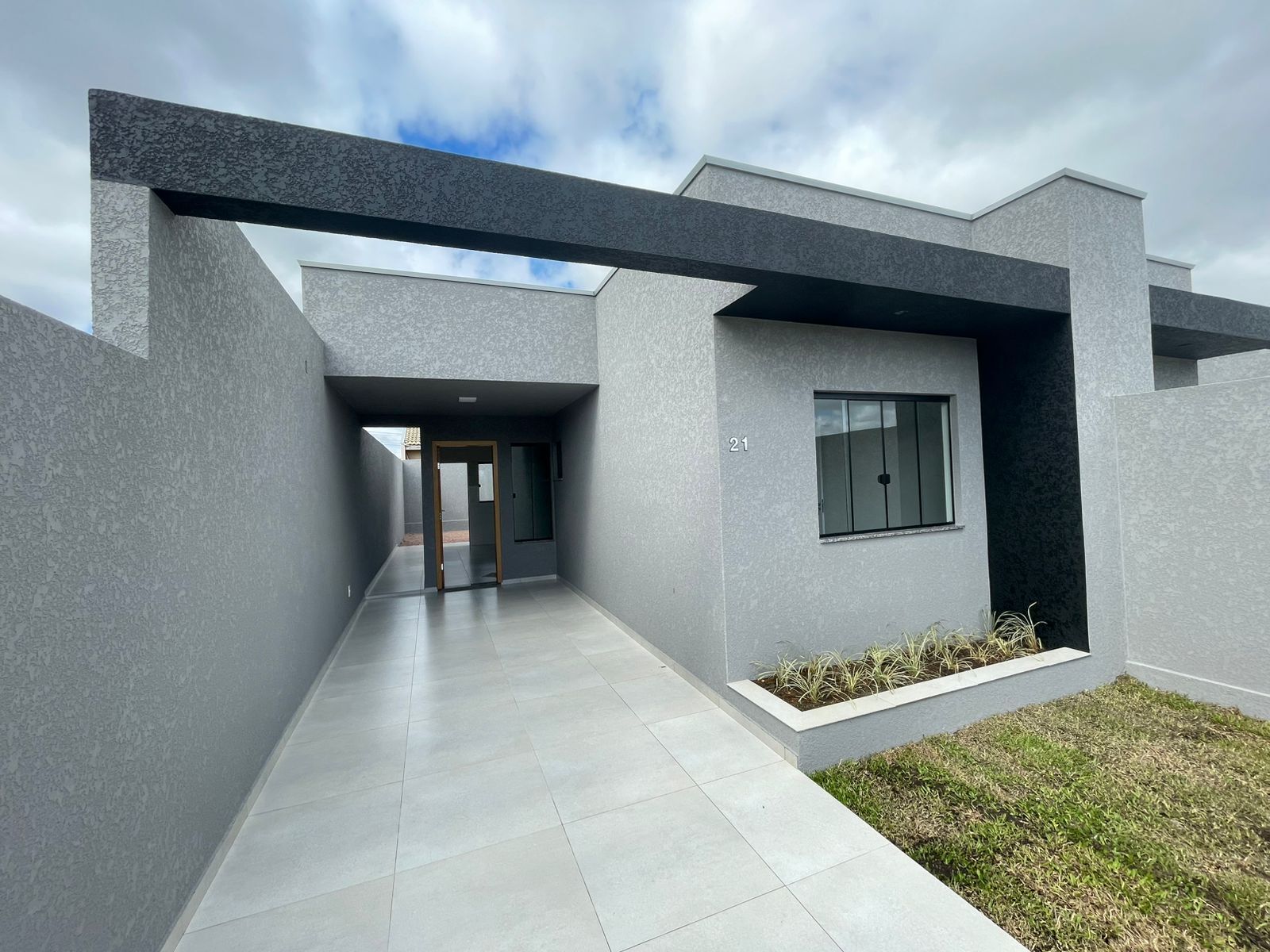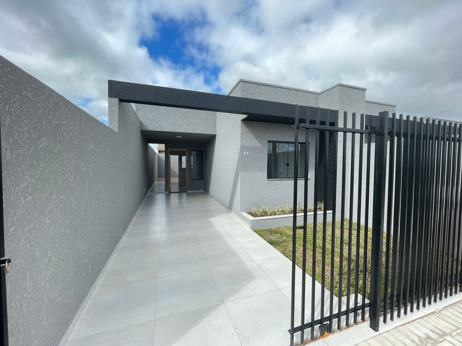 54m² - Sendo 2 quartos, sala de estar, cozinha, banheiro social, área de serviço e vaga para carros.