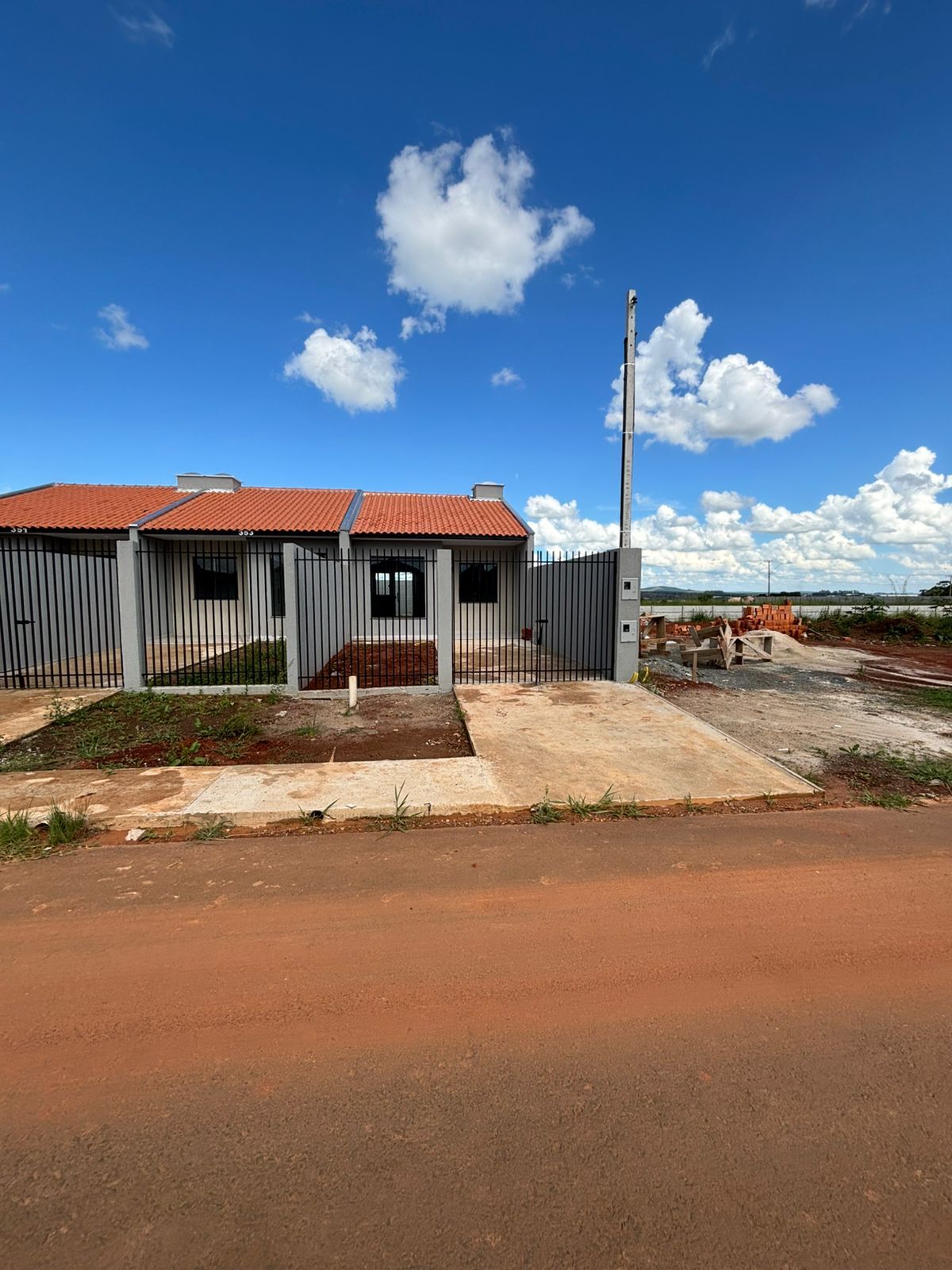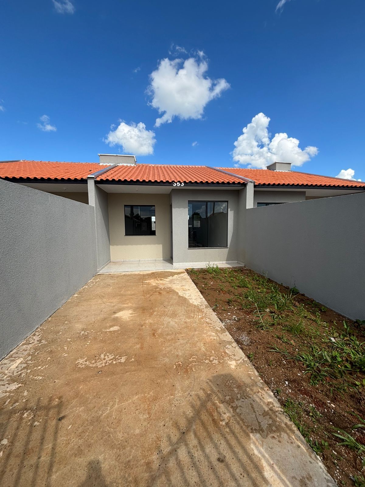 50m² - 2 quartos, sala, cozinha, banheiro, área de serviço e vaga para carros.