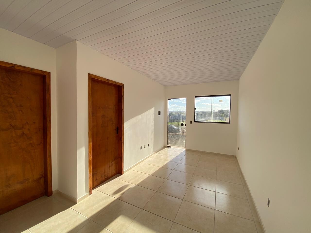 48m² - Sendo 2 quartos, sala de estar, cozinha, banheiro social, área de serviço e vaga para carros.