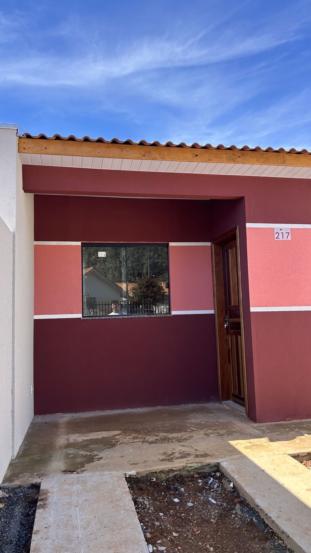 50m² - 2 quartos, sala, cozinha, banheiro, área de serviço e vaga para carros.