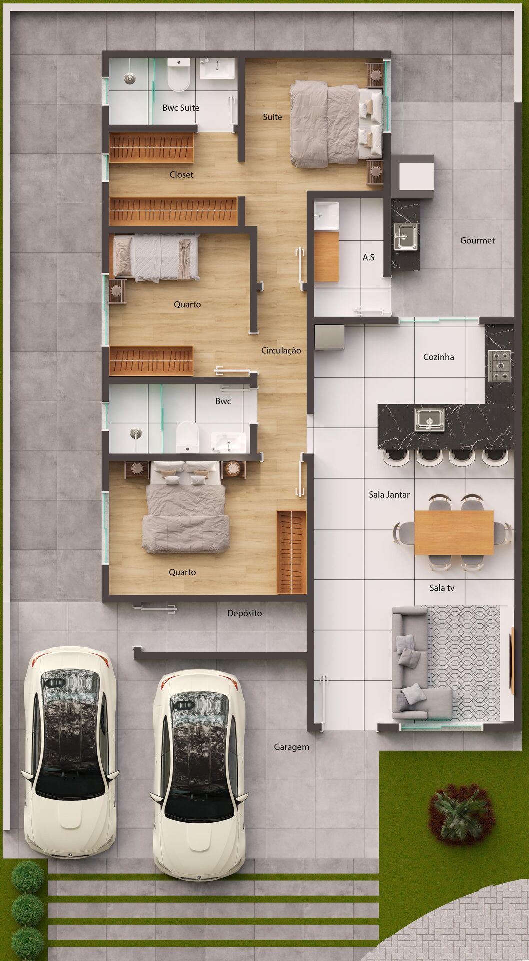 * Garagem para dois carros