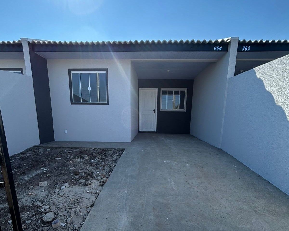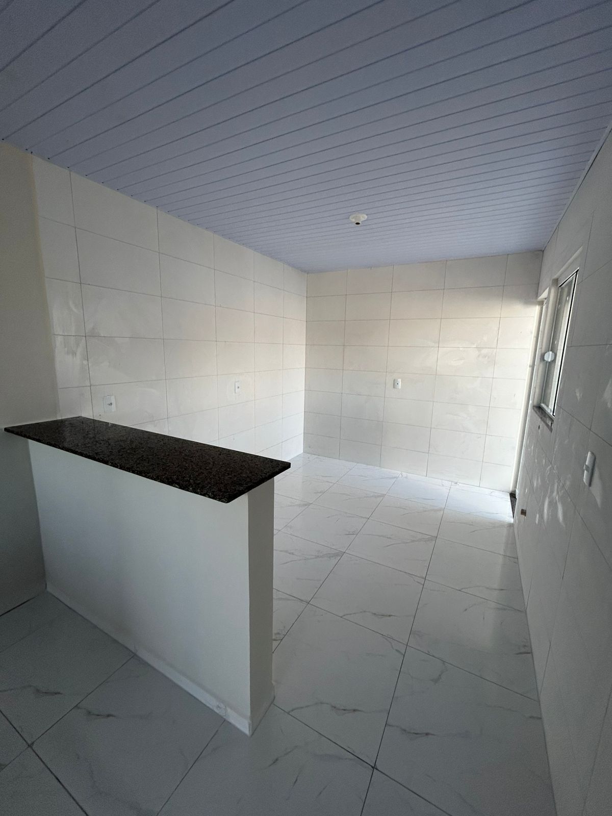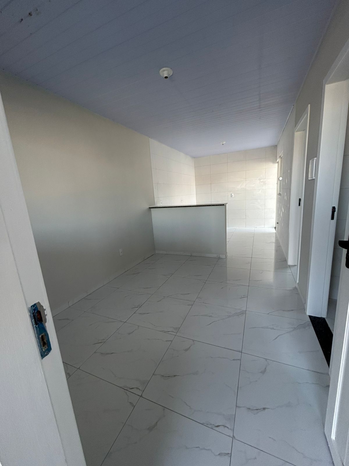 50m² - 2 quartos, sala, cozinha, banheiro, área de serviço e vaga para carros.