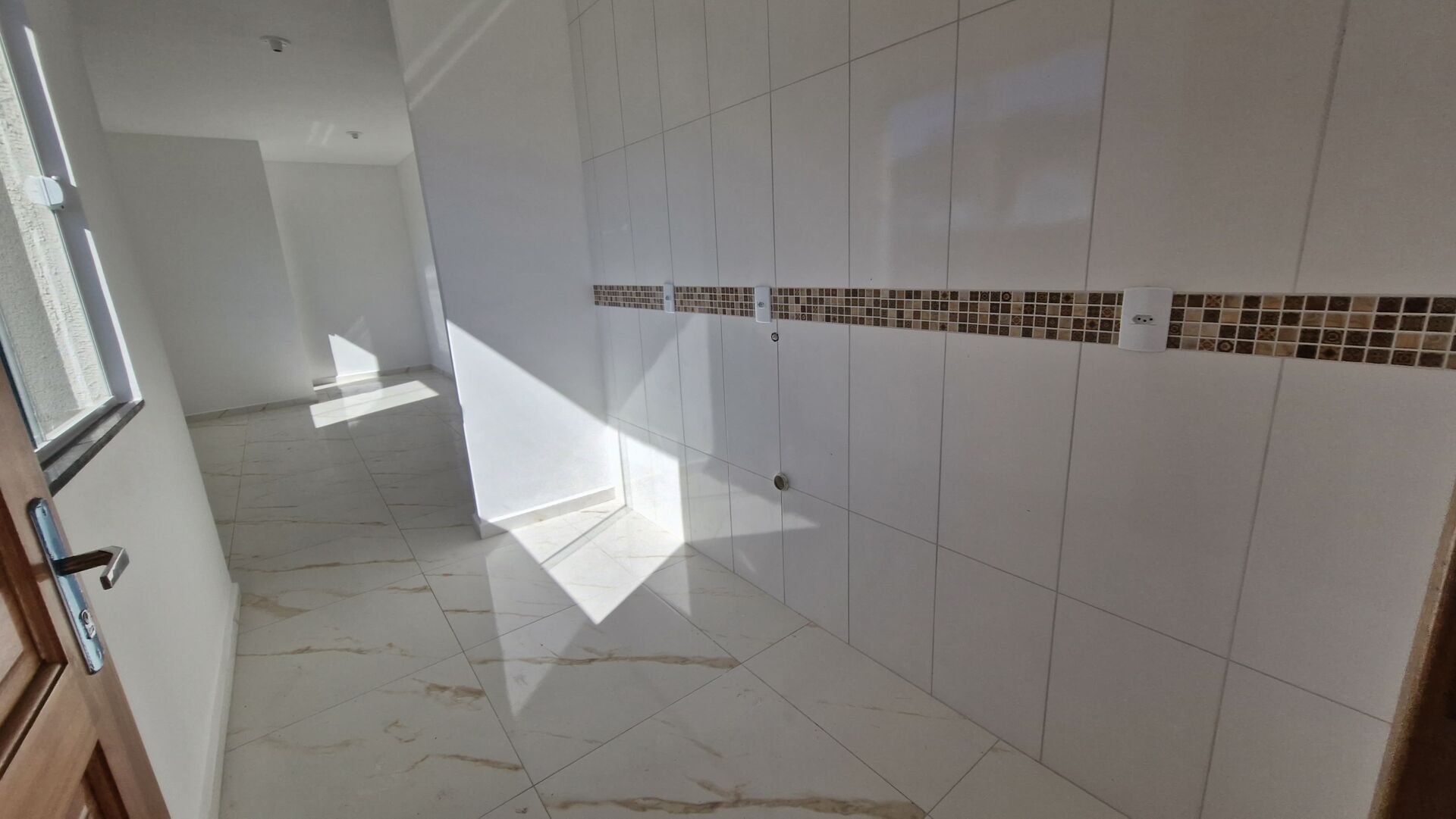 55m² - Sendo 2 quartos, sala de estar, cozinha, banheiro social, área de serviço e vaga para carro.