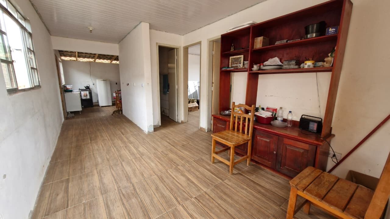 60m² - 3 quartos, sala de estar e jantar, cozinha, banheiro social, área de serviço e vaga para carros.