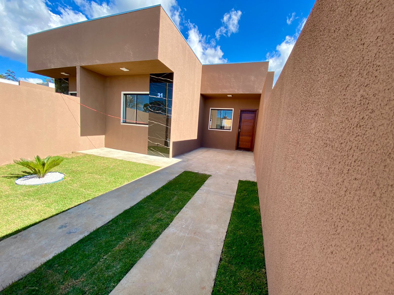 66m² - Sendo 2 quartos, sala de estar, cozinha, banheiro social, área de serviço e vaga para carros.