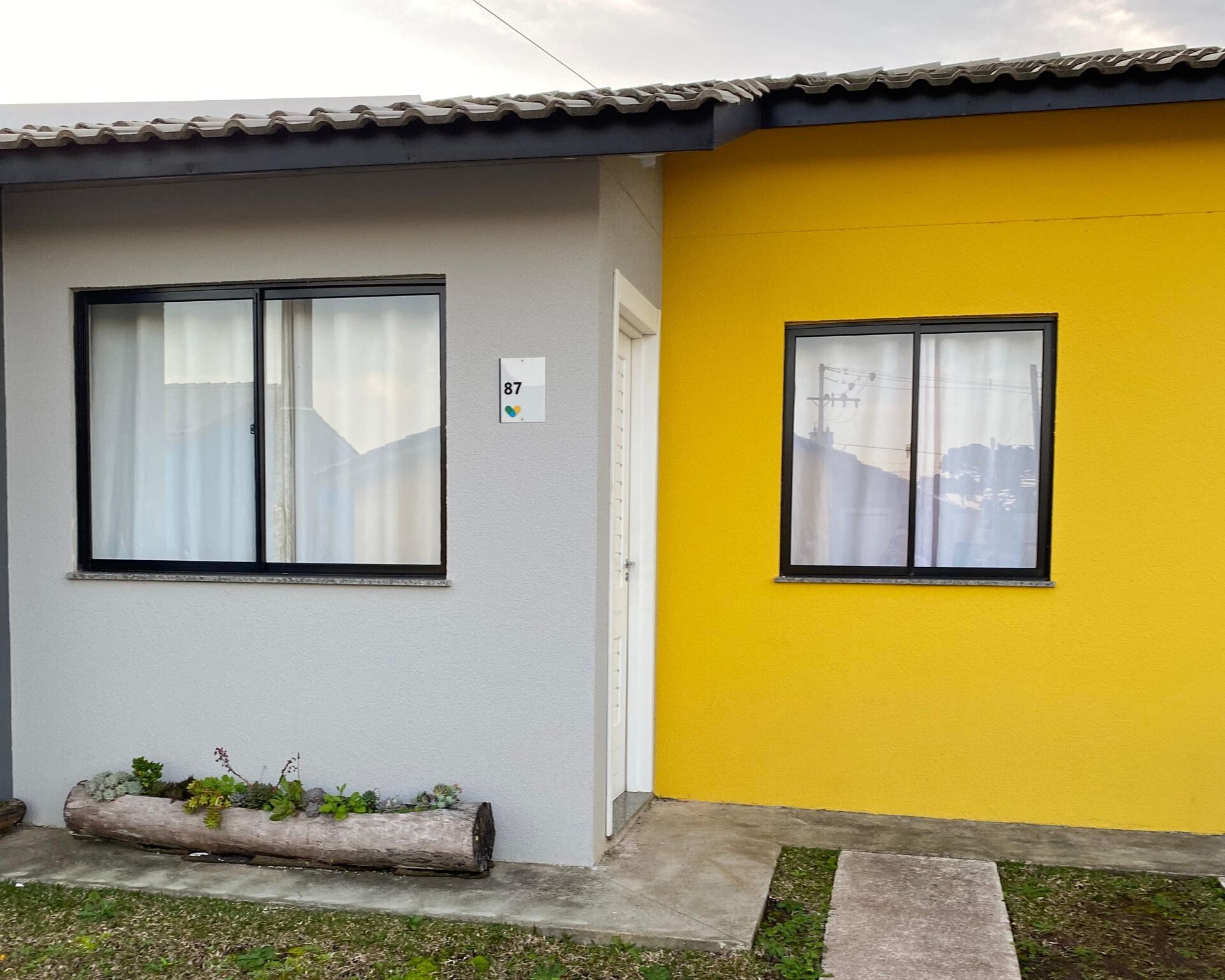 44m² - 2 quartos, sala e cozinha conjugadas, banheiro, lavanderia e 1 vaga de garagem.