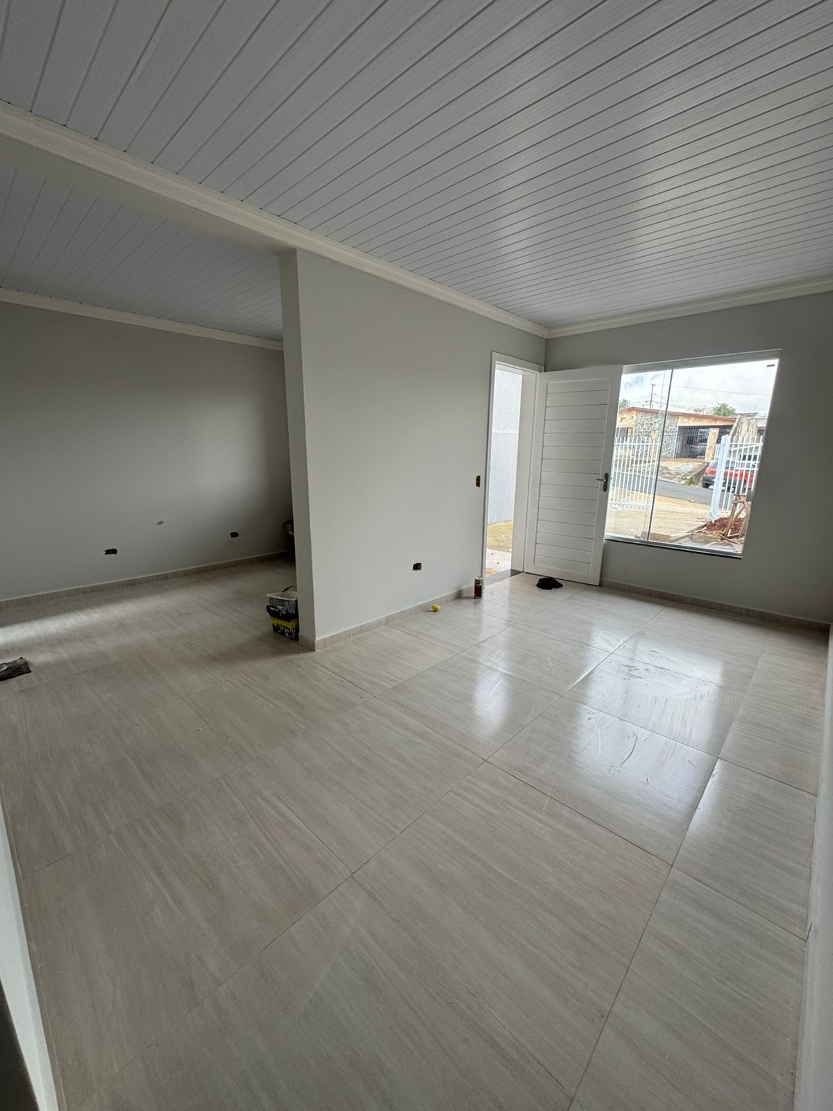 58m² - Sendo 2 quartos, sala de estar, cozinha, banheiro social, área de serviço e vaga para carros.