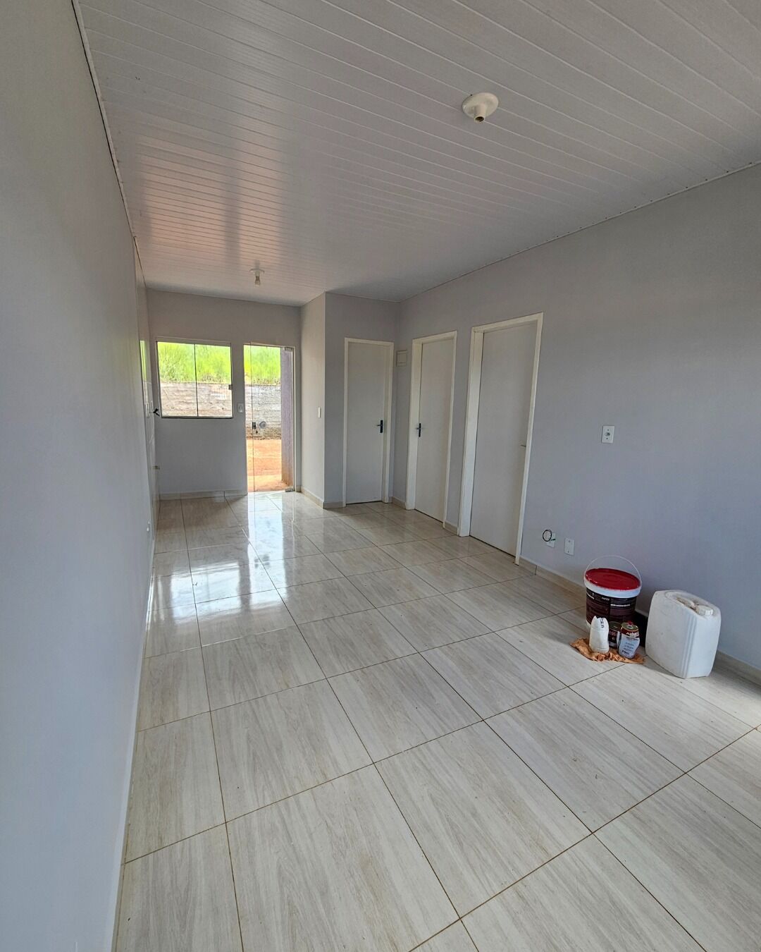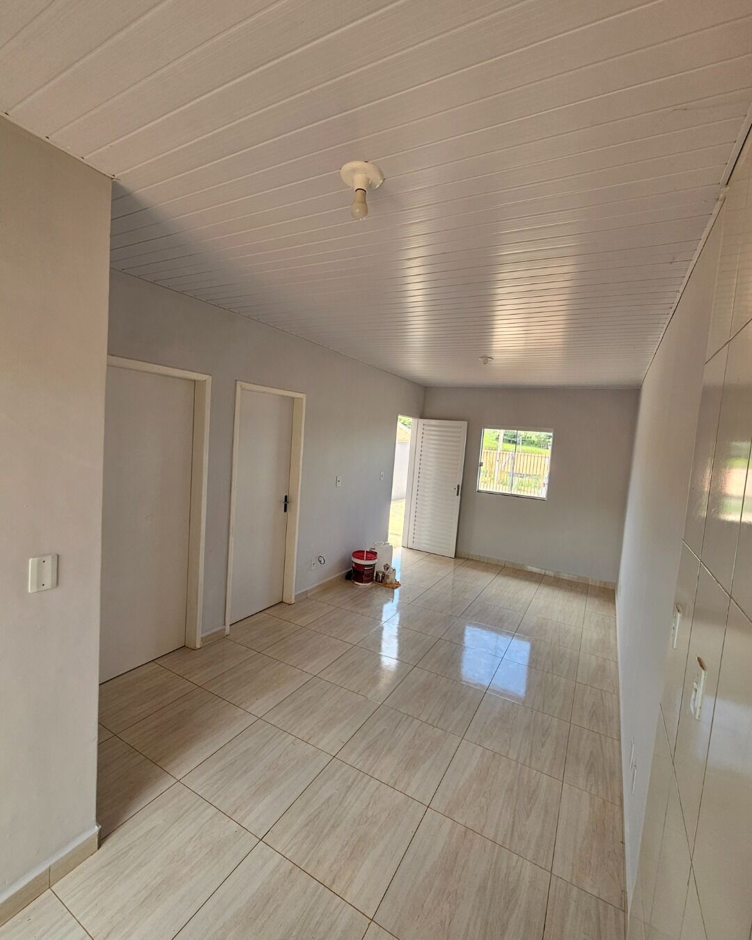 47,22 m² - 2 quartos, sala e cozinha, banheiro, área de serviço e vaga para carros.