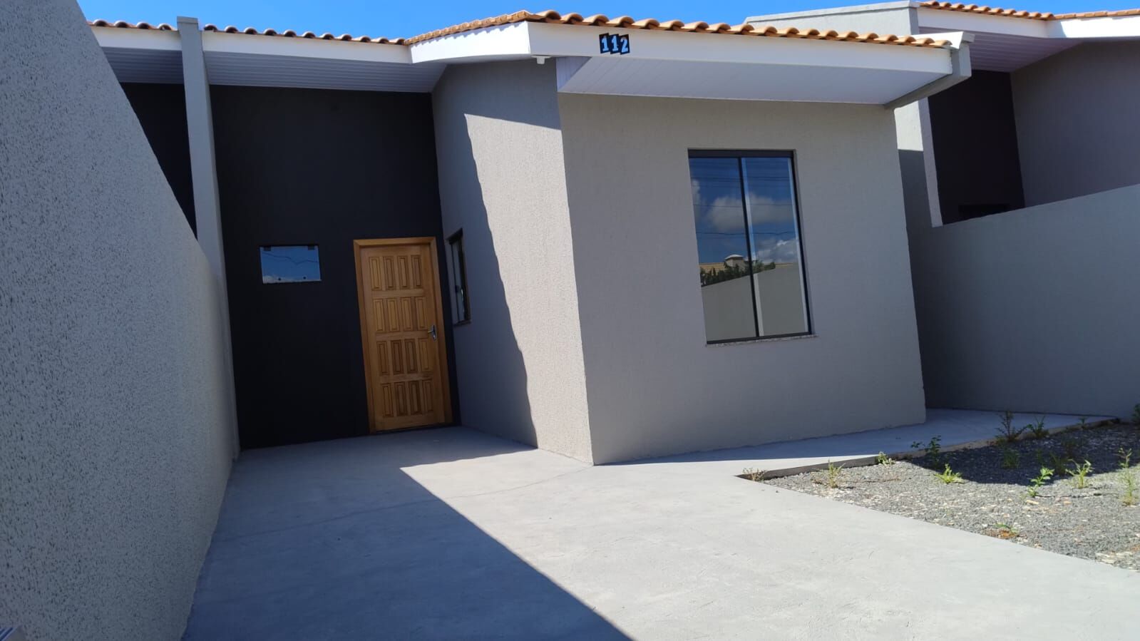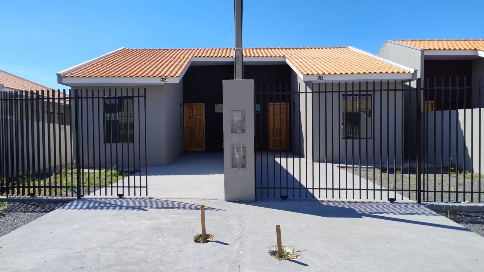 50m² - com 2 quartos, sala, cozinha, banheiro, área de serviço e vaga para carros.