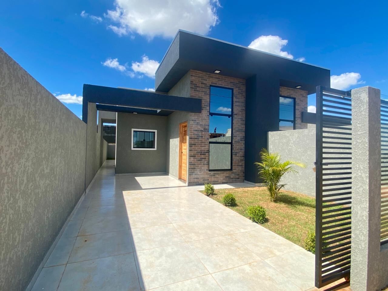 70m² - 3 quartos sendo um deles suite, sala, cozinha, banheiro, área de serviço e vaga de carros.