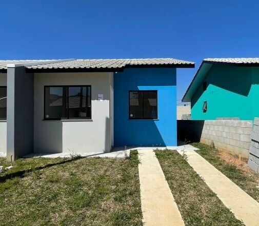 44m² - 2 quartos, sala, cozinha, banheiro, área de serviço e vaga para carro.